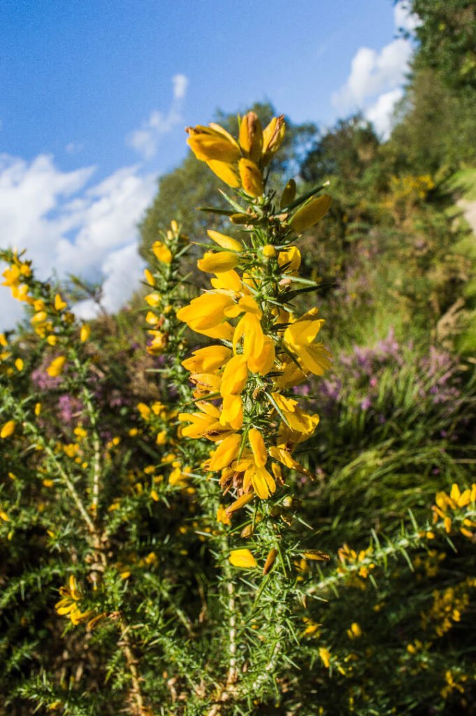 Tout autour des sentiers qui sillonnent ces lieux, des landes couvertes de fougères, de bruyères, de callunes et d’ajoncs. Les tons oscillent entre l’orange et le violet, on pourrait croire ces paysages séchés et brûlés, il n’en est rien. Décidément, cette escapade bretonne est pleine de surprises, je n’imaginais pas ce type de végétation et ce type de paysages ici. Les étendues austères de ces landes d’Arrée donnent au paysage une ambiance unique, un peu mystique, empreinte de désolation. Sur ces terres d’altitude, les arbres se font rares, balayés par des vents sévères et, depuis les hauteurs, les panoramas sont saisissants !