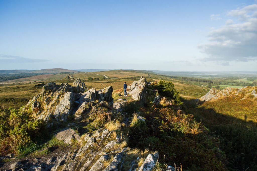 Le Massif armoricain s’est formé il y a plus de 330 millions d’années et se sépare en deux chaînes : celles des Monts d’Arrée au nord, celle des Montagnes Noires au sud. Et au sud justement, se trouve le site Karreg an Tan, la Roche du Feu, qui, avec ses 281 mètres d’altitude, est le point culminant des Montagnes Noires. Ici aussi, les pieds sur ces rocs acérés, tu as une vue imprenable et à 360° qui s’étend devant toi. Depuis le parking, un petit sentier agréable grimpe doucement au milieu des fougères et des arbres pour arriver au sommet où trônent d’étonnants rochers.