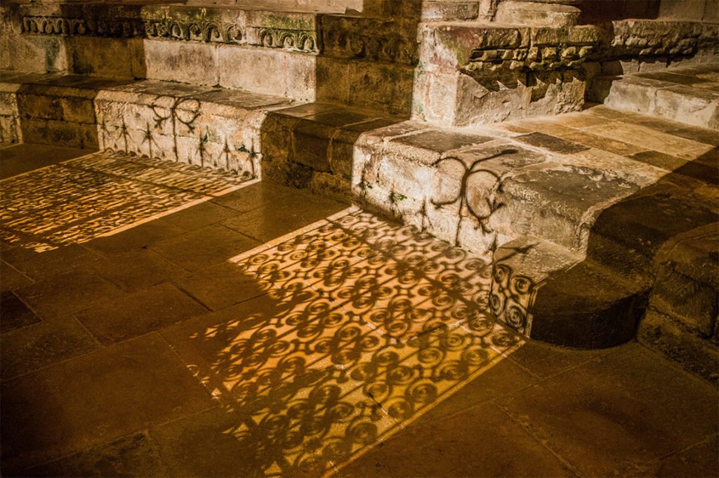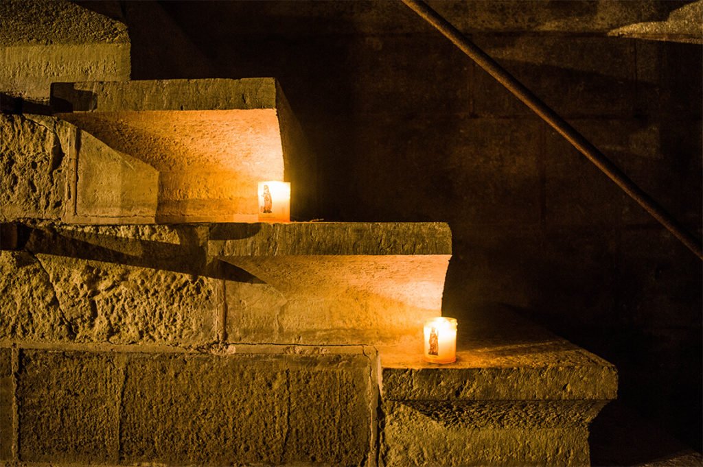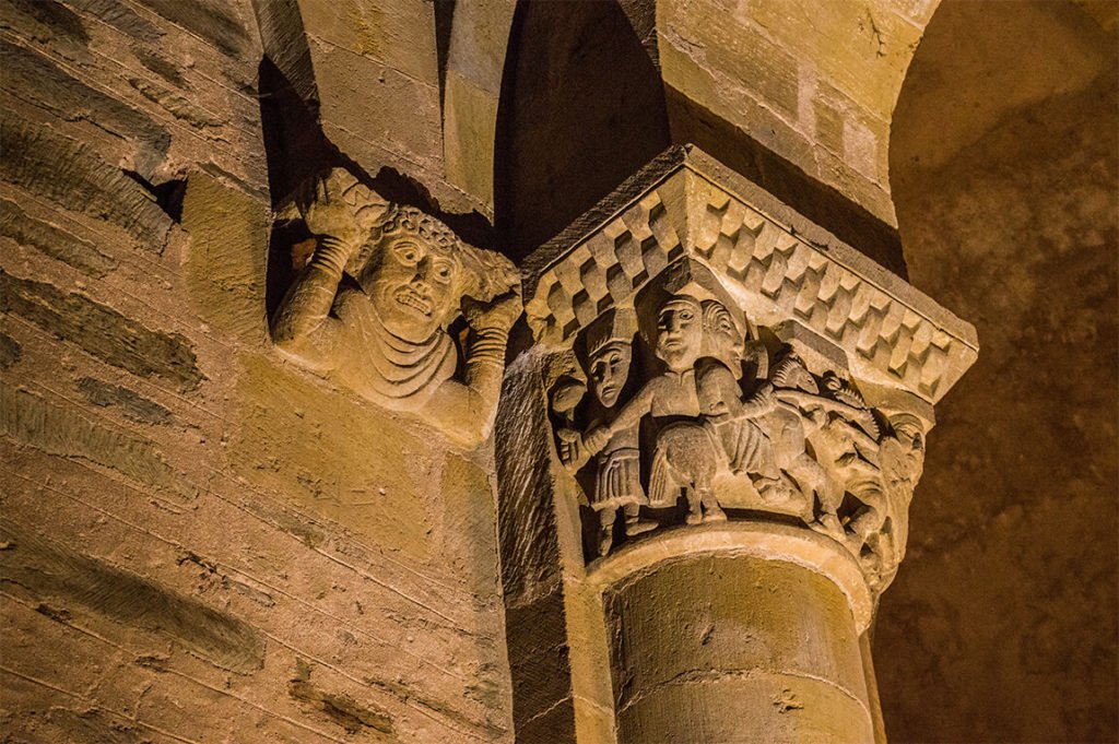 Au hasard des ombres et des lumières, l’abbatiale se dévoile et la mélodie de l’orgue, envoûtante, vient sublimer le lieu et lui donner un visage particulier. On découvre le lieu différemment, comme si les détails qui sautent aux yeux lors d’une visite en plein jour prenaient une toute autre signification. Depuis les tribunes, la vue est imprenable sur les voûtes et les ogives, la nef et les vitraux. Si tu passes par les tribunes, n’oublie surtout pas de jeter un œil aux sculptures qui ornent les piliers : des visages, des animaux, des créatures surprenantes.