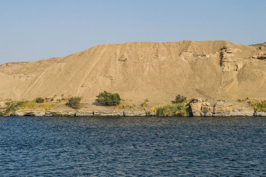 Au bord de l’eau se dressent, fiers et indomptables, des palmiers qui nous regardent passer. Derrière ces rivages fertiles et verdoyants surgissent, implacables, les dunes de sable qui rappellent que le désert est bel et bien là, en embuscade. Plus on avance vers Kom Ombo, plus les dunes s’aplatissent pour n’offrir qu’un décor luxuriant qui ferait presque oublier que quelques mètres plus loin, plus rien ne pousse.