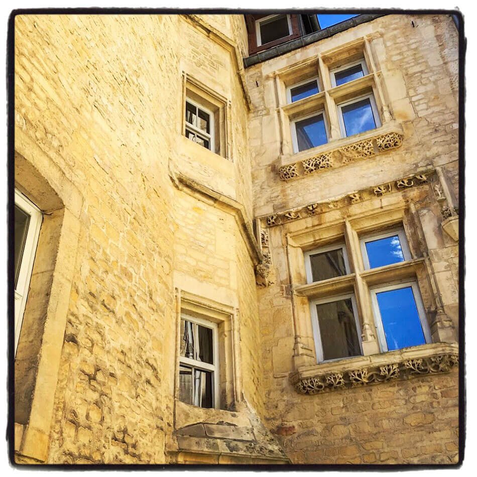 La meilleure façon de découvrir les trésors de Caen, c’est en s’aventurant à l’aveugle dans les rues et ruelles, le nez en l’air pour y découvrir de jolies fenêtres à meneaux, des sculptures, des tourelles… Si tu en as l’occasion, tu peux jeter un œil dans les cours intérieures où tu trouves parfois quelques pépites.