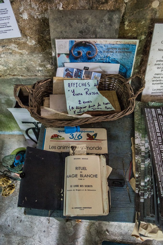 Ce que j’ai préféré dans ce jardin, c’est la petite cabane avec toute une collection d’objets anciens (c’est mon côté “j’aime les endroits abandonnés” qui ressort) : de vieux livres, des jouets poussiéreux, un vieux vélo, des caisses en bois renfermant un mystérieux trésor. On se croirait dans un grenier où chaque recoin regorge de potentiels trésors. En fait, dans des endroits comme ça, on se dit que le champs des possibilités est infini, il peut y avoir tant de choses étonnantes dans ces caisses, tant de correspondances à découvrir, de vieux livres à feuilleter (le paradis quand, comme moi, on aime l’odeur des vieux bouquins), des jouets d’un autre temps… Un endroit follement poétique !