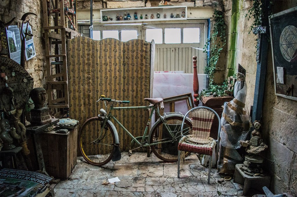 Et vas-y que je t’y mets des statues complètement loufoques, des sculptures sans queue ni tête, une cage à oiseaux vide et rouillée posée artistiquement par terre entre deux pousses de mauvaise herbe, un vélo sans roue, un crucifix qui ressemble à un vrai crucifix (ce qui, au vu de ce qui peuple ce jardin, est bien ce qui peut surprendre)…
