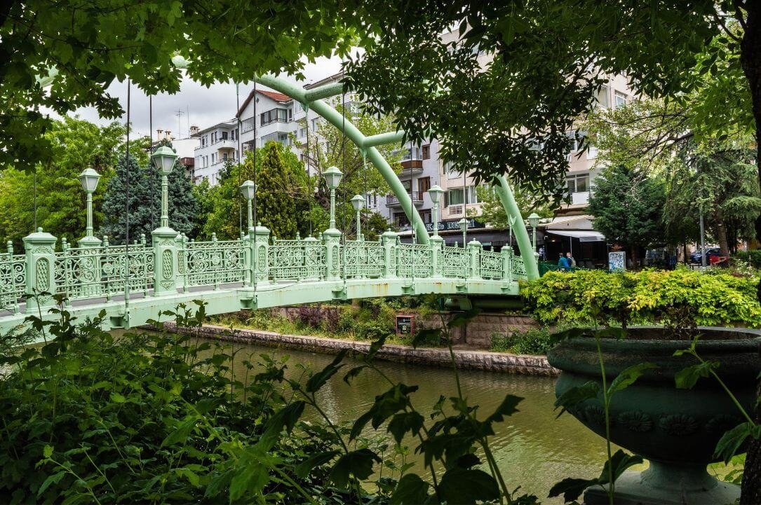 Toutefois, prendre la direction de la rivière, ce n’est pas uniquement pour faire un tour de gondole. La promenade qui longe la rivière est également très agréable : le cours d’eau est traversé par plusieurs jolis ponts colorés et, surtout, est bordé de verdure : arbres, massifs de fleurs, pelouses. Et de part et d’autre de la Porsuk, des cafés et des petits restaurants.