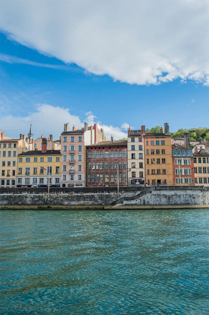 J’ai adoré traverser les ponts qui enjambent la Saône, admirer la lumière du soleil couchant inonder d’un teinte chaleureuse les jolies façades qui la bordent, me laisser séduire par les couleurs des bâtiments… Tout ça a imprimé en moi un souvenir exquis de Lyon. Alors j’avoue honnêtement, c’est un des endroits de Lyon où je pourrais flâner et passer facilement toute une l’après-midi. Juste s’asseoir sur le bord, bouquin dans une main, cocktail dans l’autre et lunettes de soleil sur le nez.