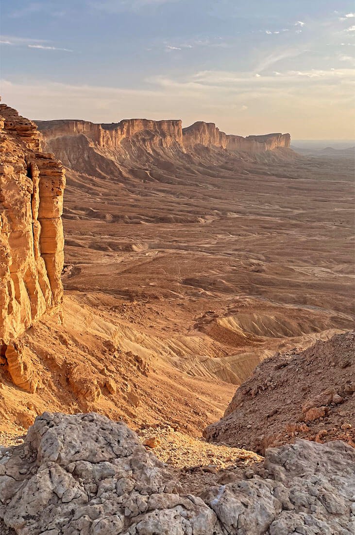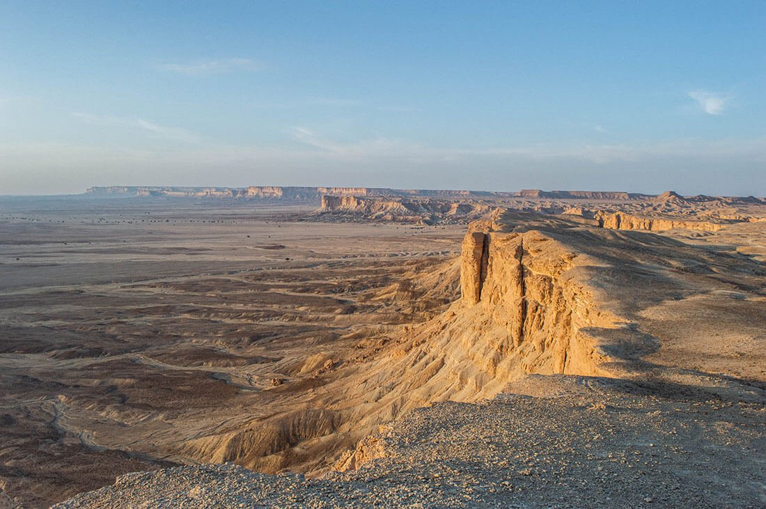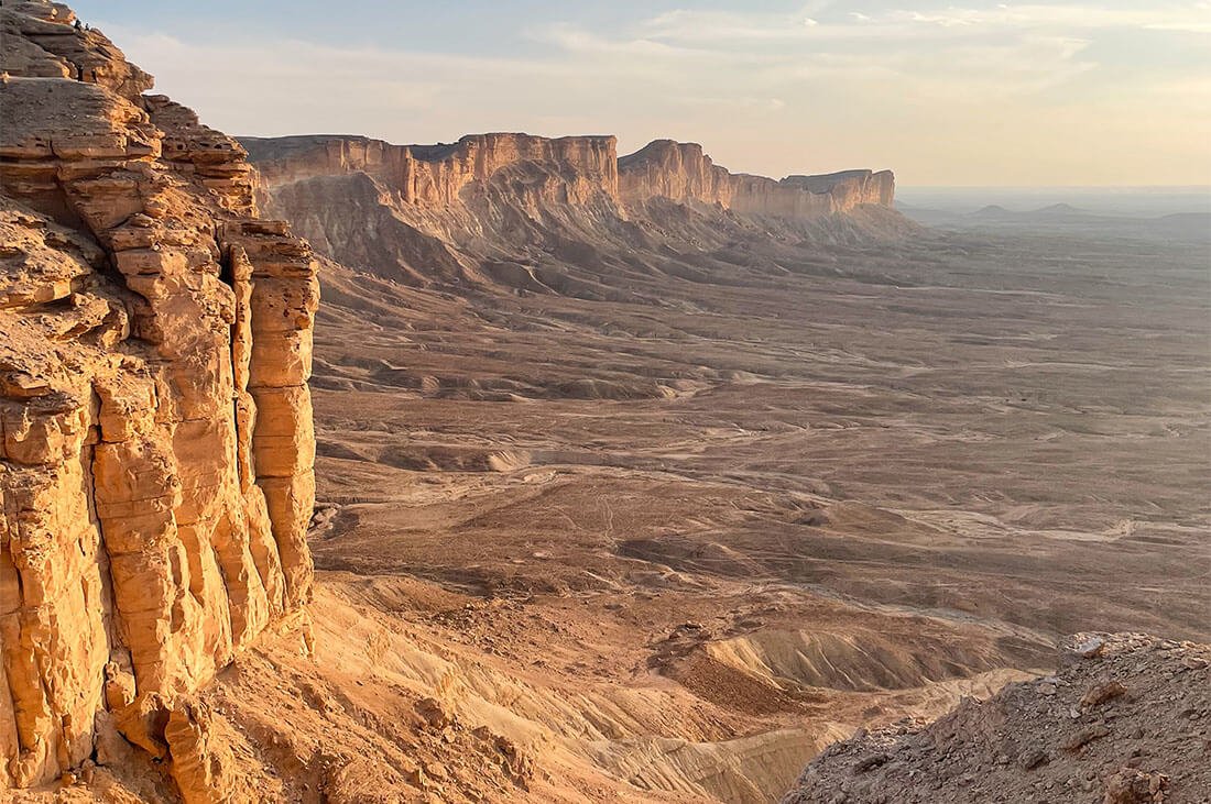 Edge of the World, le fameux bout du monde saoudien, est le nom donné à ces majestueuses falaises, au bout du massif montagneux nommé Jabal Fihrayn. La falaise la plus haute culmine à 1131 mètres d’altitude.