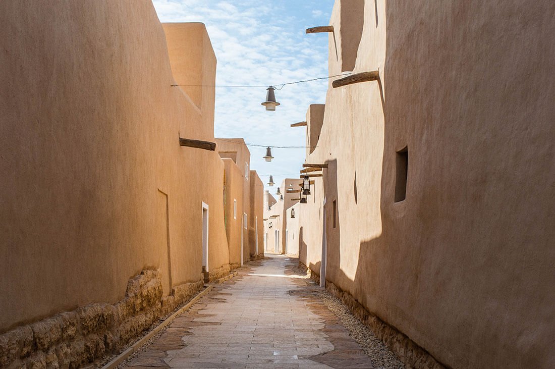 Située dans la banlieue ouest de Riyadh, la petite commune de Ad-Diriyah semble couler des jours paisibles, une sérénité à peine troublée par les touristes de plus en plus nombreux qui se pressent vers son site archéologique : le quartier de At-Turaif, aujourd’hui classé au patrimoine mondial de l’Unesco. C’est le site de l’ancienne capitale du royaume, la première capitale de la dynastie saoudienne aujourd’hui encore au pouvoir. La vieille cité centenaire qui a vécu âges d’or et destructions est aujourd’hui en pleine restauration et reprend vie. Ses allées ombragées semblent retrouver l’animation d’antan, ses boutiques ressuscitent l’effervescence des échanges commerciaux d’alors.