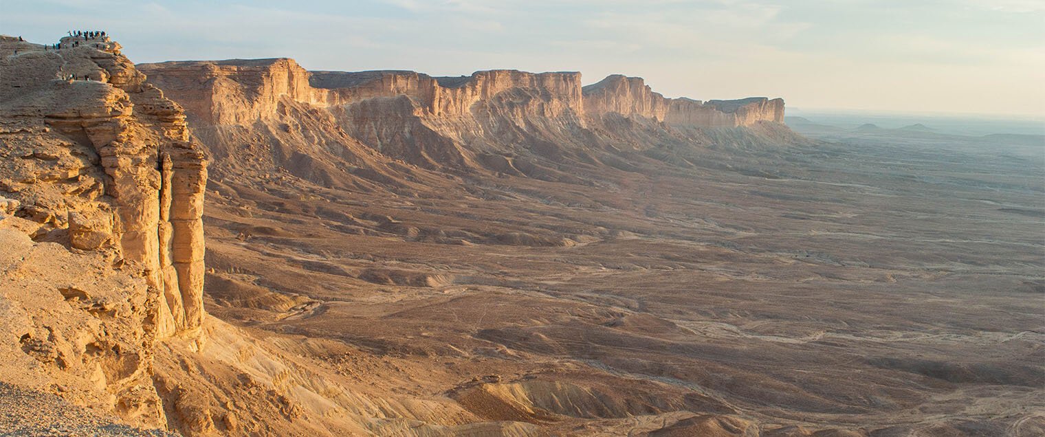 Edge of the World est probablement le site naturel le plus spectaculaire des environs de Riyadh. Le panorama a longtemps été difficilement accessible : n’importe quel véhicule ne peut pas traverser les étendues de sable et de roches qui permettent d’arriver jusqu’au bout de la piste. Aujourd’hui, plusieurs agences locales proposent des visites et il est possible de s’y rendre avec son véhicule de location sans trop de difficulté.