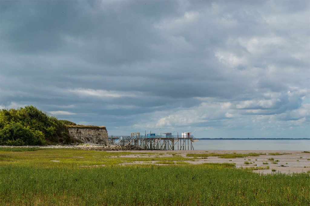 J’avais découvert son existence quelques jours avant d’entreprendre cette petite virée dans les environs de Saintes. À quelques kilomètres de Royan, l’église de Talmont trône en bordure de Gironde, entraînant derrière elle le petit village qui semble sortir des terres pour s’avancer sur les flots ! Je l’ai vu à marée basse, je pense que ça doit être encore plus beau à marée haute.