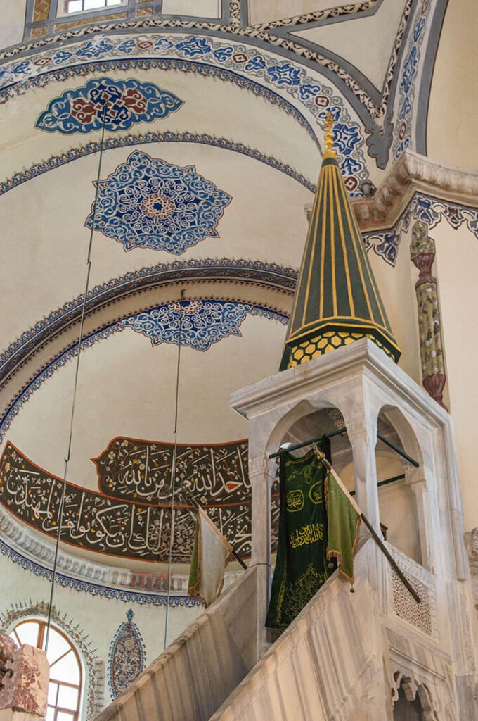Elle est pour moi une des plus belles mosquées d’Istanbul ! J’ai adoré découvrir cette petite pépite nichée dans le quartier d’Aksaray, à un croisement bruyant et au trafic incessant. Pourtant, dès qu’on pousse les portes de la mosquée, plongée dans le calme et la quiétude, on se sent bien, comme loin du tumulte de la ville.