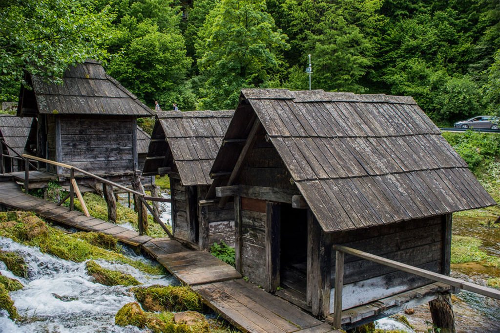 À une dizaine de minutes de Jajce se trouvent de jolis petits moulins en bois, vieux et à l’architecture typique de la région. Pour les atteindre, nous poursuivons notre route en longeant la sublime rivière aux teintes exceptionnelles. Avec toute cette eau et ces superbes collines verdoyantes, le potentiel naturel de la Bosnie me surprend de jour en jour. Ce pays est décidément magnifique !