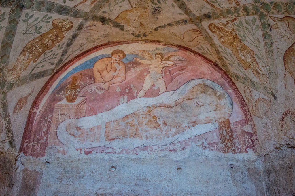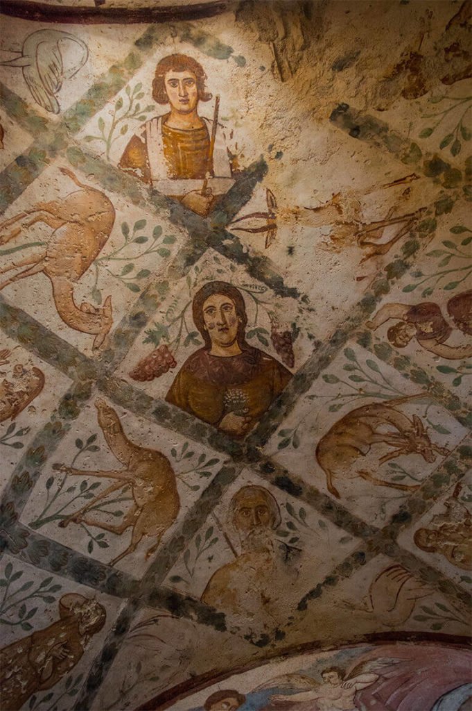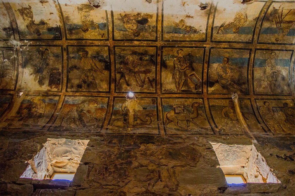 Sa construction date du début de la dynastique Omeyyade (entre 711 et 715 après JC). Situé à 80 km d’Amman, le Quseir Amra (“petit palais”) m’a tout de suite conquis. D’extérieur, il a une apparence simple moins aboutie et harmonieuse que le Qasr Kharanah. Mais quand vous passez la porte et pénétrez dans la pièce principale, toutes les fresques apparaissent. Des couleurs bleutées, jaune, rose… On a l’impression de visiter un palais de l’empire romain ou byzantin.