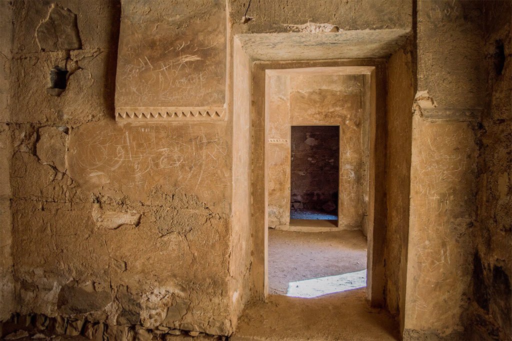 En venant d’Amman, le Qasr Kharaneh est le premier château que vous visiterez. Il se situe à environ 1 heure de route de la capitale, tout dépend du trafic. Sa silhouette se dessine petit à petit et apparaît à quelques mètres de la route. Sa forme rectangulaire, droite et régulière le rend reconnaissable entre tous. J’ai immédiatement été séduit par ses formes simples et droites, sa porte en bois, ses arcades, sa petite cour, ses escaliers et ses couloirs. A l’intérieur, de nombreuses salles communiquent entre elles par une multitude de portes taillées dans la roche. Tout est fait pour que la lumière du soleil baigne chaque pièce et illumine les coins d’ombre.
