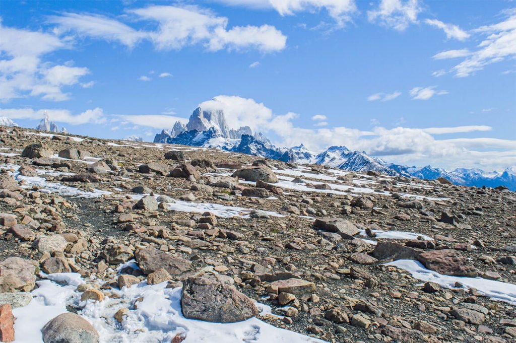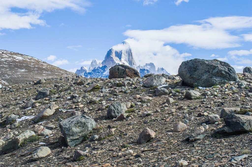 On commence la balade par une belle pente, très vite récompensée par une superbe vue sur le Fitz Roy dégagé. Contrairement au sentier du Fitz Roy qui alterne plat et montée, et au sentier à la Laguna Torre principalement plat, la randonnée à la Loma del Pliegue Tumbado est principalement en montée presque constante. Pour te donner un exemple, c’est une randonnée de 10 km aller avec 1 km de dénivelé, autant dire que par moments, ça monte. Mais vu que la montée est constante, il n’y a que dans certaines parties du sentier que la montée est un peu éprouvante.
