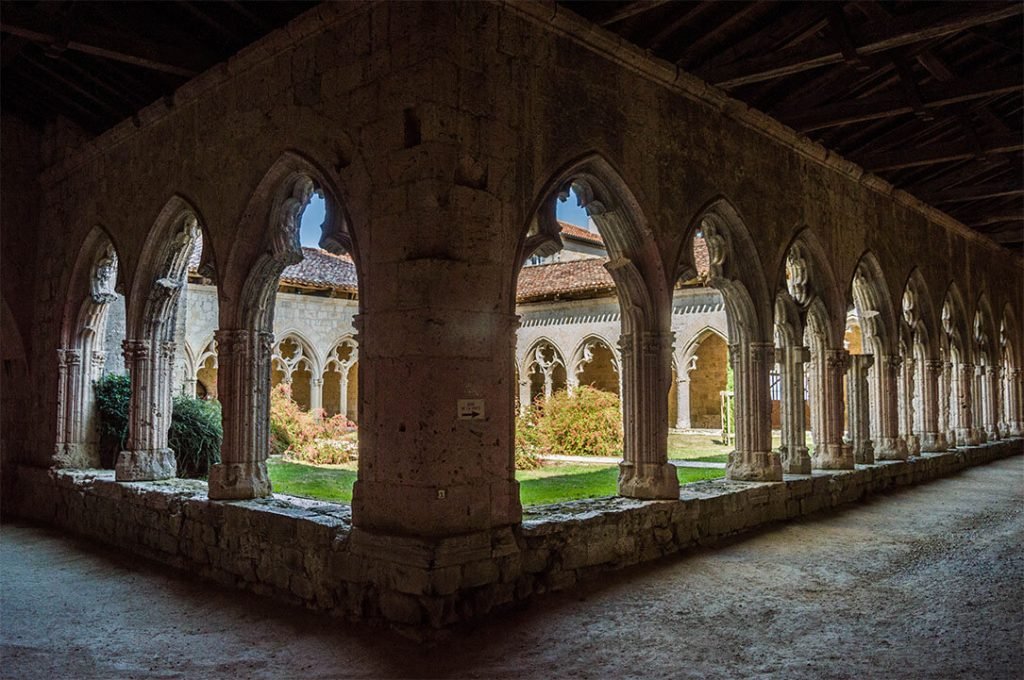 Le plus remarquable dans ce petit village, c’est sa magnifique collégiale et son cloître médiéval. Si tu aimes ce genre de visite comme moi (rappelle-toi, je t’ai parlé de jolis cloîtres à Cadouin dans le Périgord, Luxeuil-les-Bains en Haute-Saône ou encore Montbenoît dans le Doubs), tu devrais adorer le cloître de La Romieu.