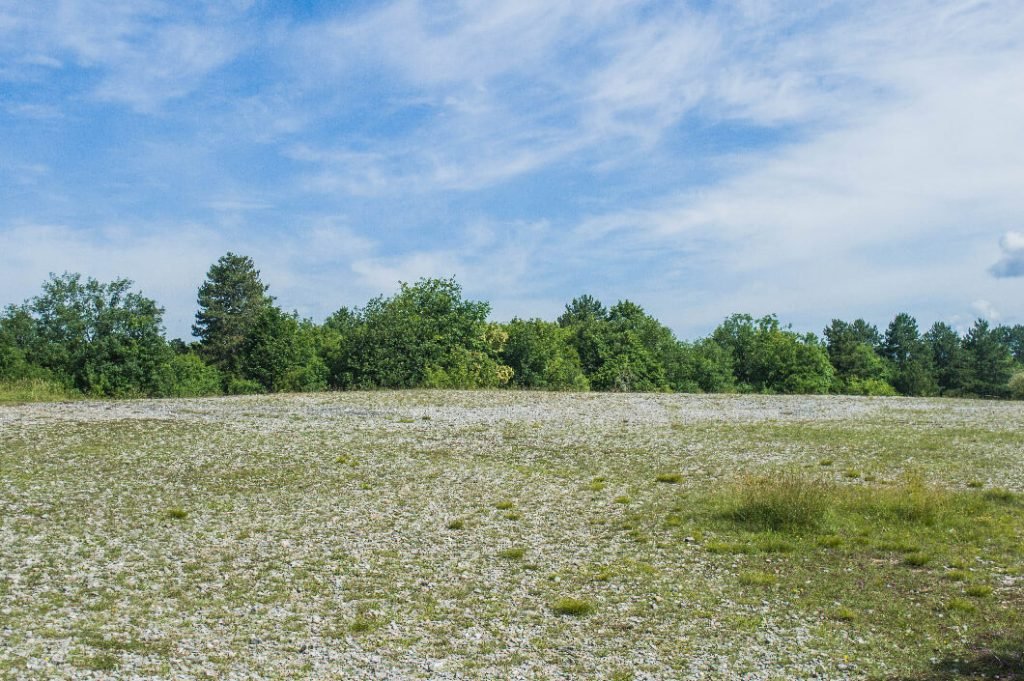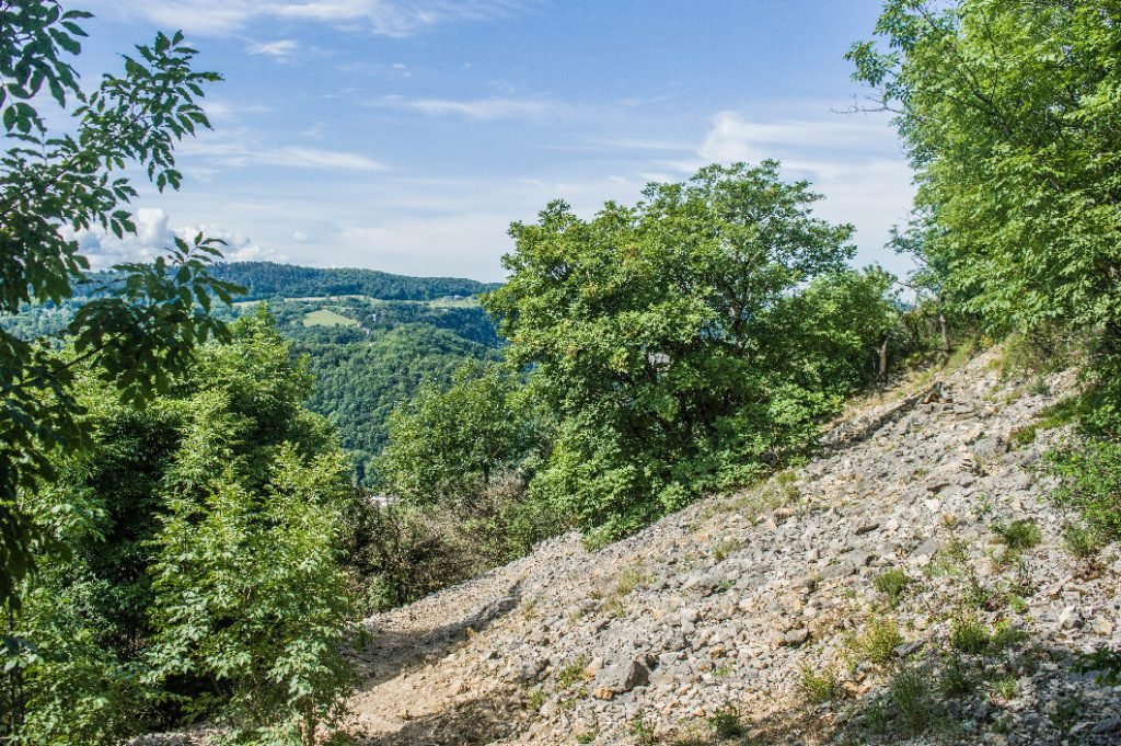 Un désert ? À Besançon ? Ce n’est pas un désert à proprement parler, simplement une clairière de rocailles inattendue au milieu des arbres sur le sommet d’une colline toute boisée.