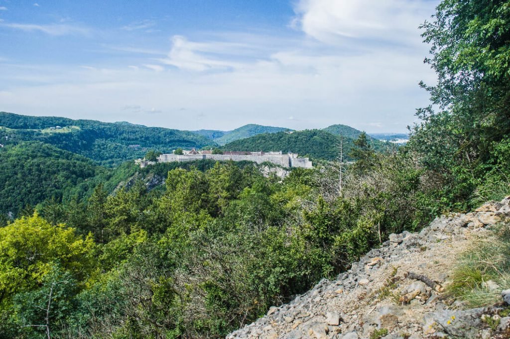 Le Rosemont, c’est une autre colline boisée de Besançon, et peut-être une des plus fascinantes. Depuis sa corniche, la jolie vue s’étend sur la ville moderne, la vallée du Doubs et les monts du Jura. Mais outre la vue et un fort militaire, cette colline te fait découvrir une facette méconnue de la ville de Besançon : son ancienne activité viticole. Jusqu’à la fin du 19e siècle, toutes les collines vertes de Besançon n’étaient pas boisées mais couvertes de vignes. En témoignent les jolies cabordes, cabanes de vignerons en pierres sèches, que tu retrouveras sur cette randonnée et la suivante.