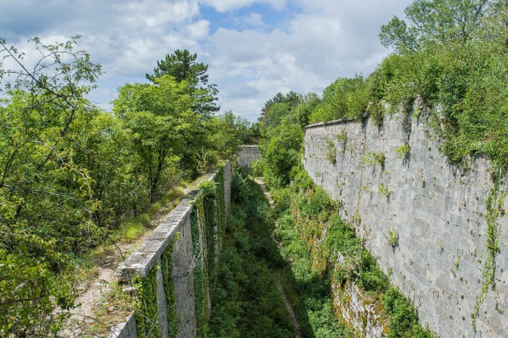 Par un petit escalier, tu remontes en direction du Fort de Chaudanne, un autre fort construit au 19ème siècle pour parfaire la défense de la ville mise à mal lors du siège de 1814. Le fort actuel est construit de 1841 à 1845 et fait face au fort de Bregille situé en face, de l’autre côté de la citadelle. Depuis le Fort, un beau belvédère sur la vieille ville et sur la Citadelle.