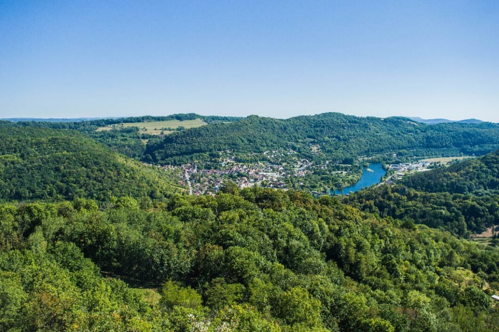 le joli point de vue sur la vallée du Doubs en amont de Besançon.