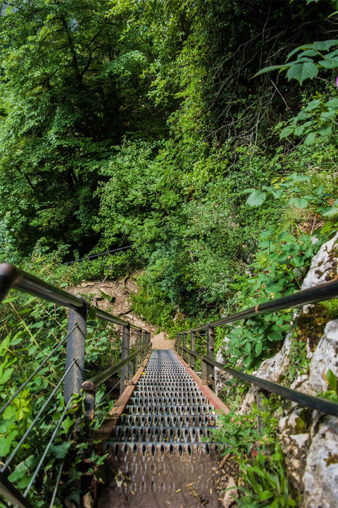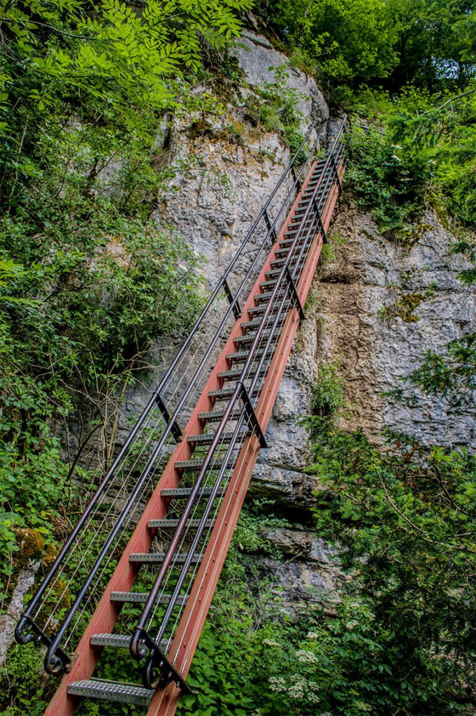 Et puis il y a les Échelles de la Mort, accrochées à flanc de falaise et permettant de rejoindre un belvédère, suspendu un centaine de mètres plus haut. La vue y est imprenable sur les gorges du Doubs. Il fut un temps où ces échelles, au 17ème siècle, n’étaient que des troncs d’arbres, arrimés tant bien que mal aux parois. Ce n’est qu’en 1898 que deux forgerons du coin fabriquèrent 3 échelles en acier. Aujourd’hui, elles sont solidement attachées à la falaise et le parcours est sécurisé. Il y a même une via ferrata et des mordus s’adonnent même à l’escalade.
