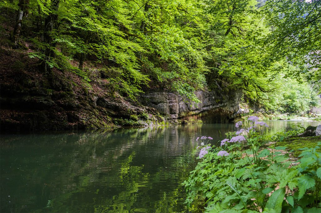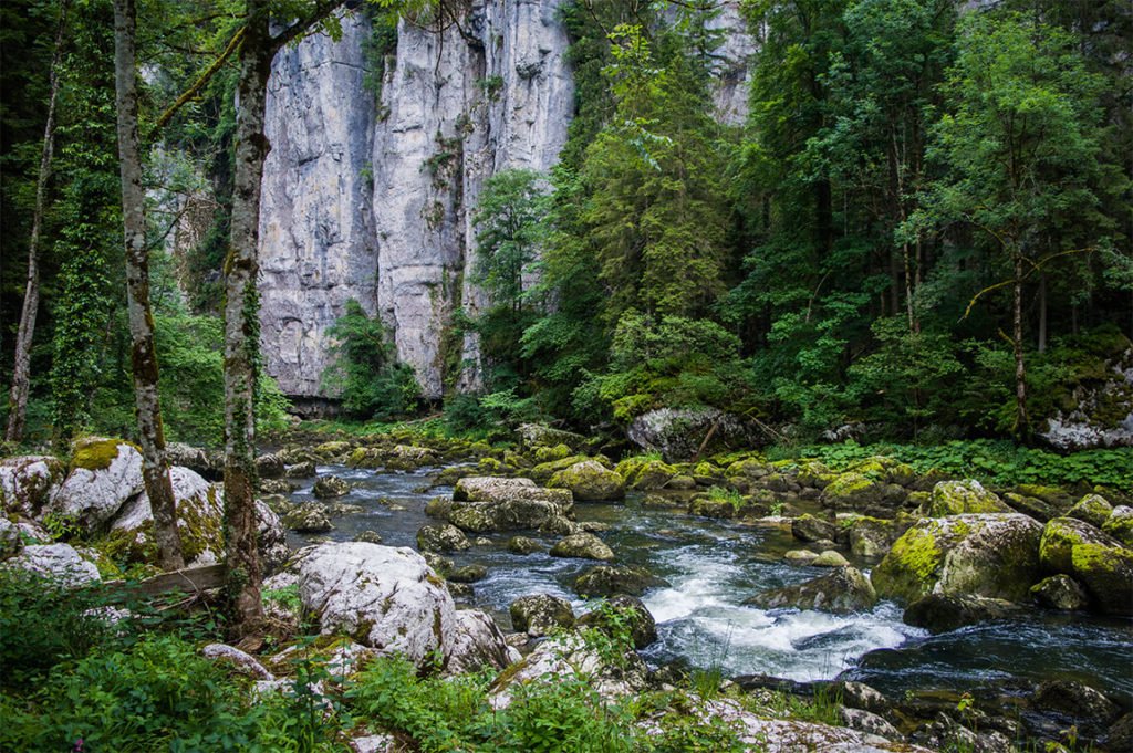 Après le lac de Moron, le Doubs s’enfonce davantage au milieu des roches, des sombres forêts de sapins et des sous-bois moussus. Un monde magique teinté de légendes, d’histoires et de drames qui ont donné le nom de Vallée de la Mort. Les gorges du Doubs, un lieu sauvage et préservé qui te réserve de belles découvertes.