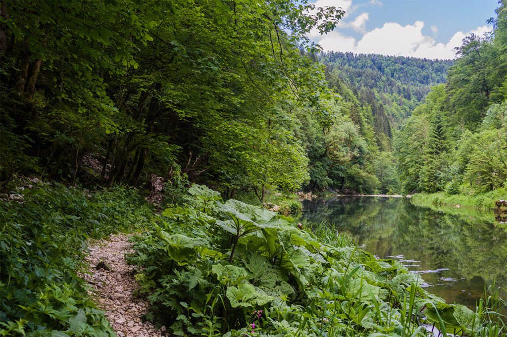Depuis le deuxième belvédère français, en face de la cascade, un sentier de randonnée permet de longer le Doubs tout le long de la frontière. C’est un tronçon de la Grande Traversée du Jura (GTJ) qui relie Mandeure (dans le Doubs) au Grand Colombier (dans l’Ain) sur 394 kilomètres. Pour la suite de notre balade, on va remonter le sentier en direction du nord.