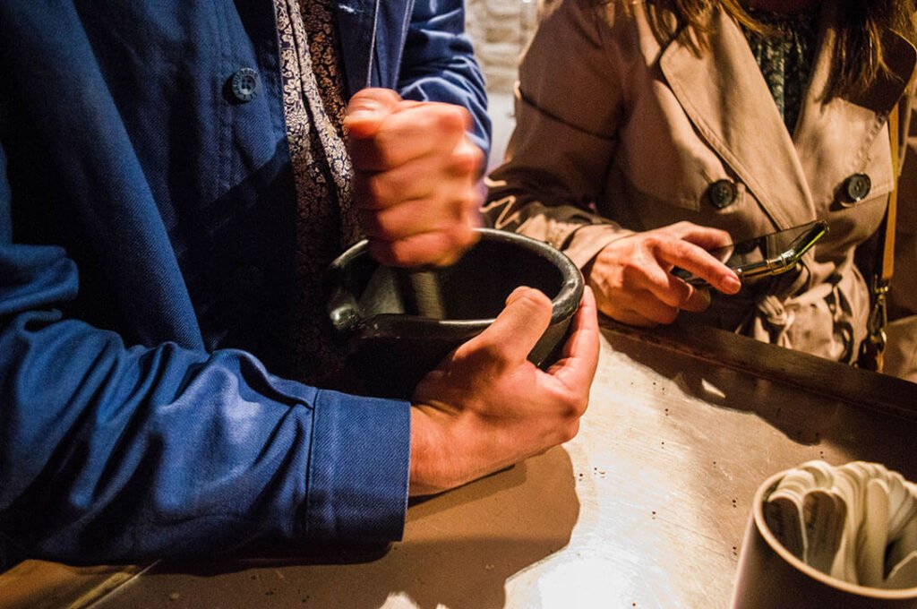 À l’entrée de la ville de Beaune, la fabrique propose de cycles de visites pour découvrir la production de moutarde de l’intérieur. On commence d’abord par la fabrication de sa propre moutarde : on écrase délicatement les graines de moutardes avec quelques gouttes de vinaigre et une pincée de sel. Ensuite, on écrase, encore et encore, jusqu’à obtention d’une pâte jaunâtre qui pique légèrement le nez. Ensuite, on visite les ateliers pour terminer par une dégustation de plusieurs moutardes aromatisées : safran, poivre, curry, cacao, estragon, pinot noir, noix… Il existe en tout plus de 20 saveurs différentes, de quoi donner plein d’idées de recettes !