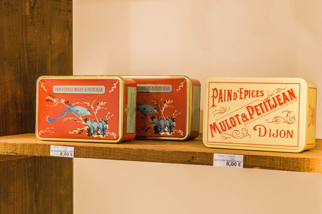 Qui l’eût cru ?! Eh oui, le pain d’épices primitif nous vient de Chine où se présentait sous la forme d’un mélange de miel et de farine et servait de ration aux soldats de l’Empereur. Arrivé d’abord au Moyen-Orient via les échanges commerciaux et les invasions, il fera son entrée en Europe suite aux Croisades. Mais alors, pourquoi en Bourgogne ? Très implanté en Flandres, il est amené à Dijon par Marguerite de Flandres qui épouse le duc de Bourgogne Philippe le Hardi. Aujourd’hui, Mulot & Petitjean fait partie des dernières fabriques de pain d’épices de Bourgogne.