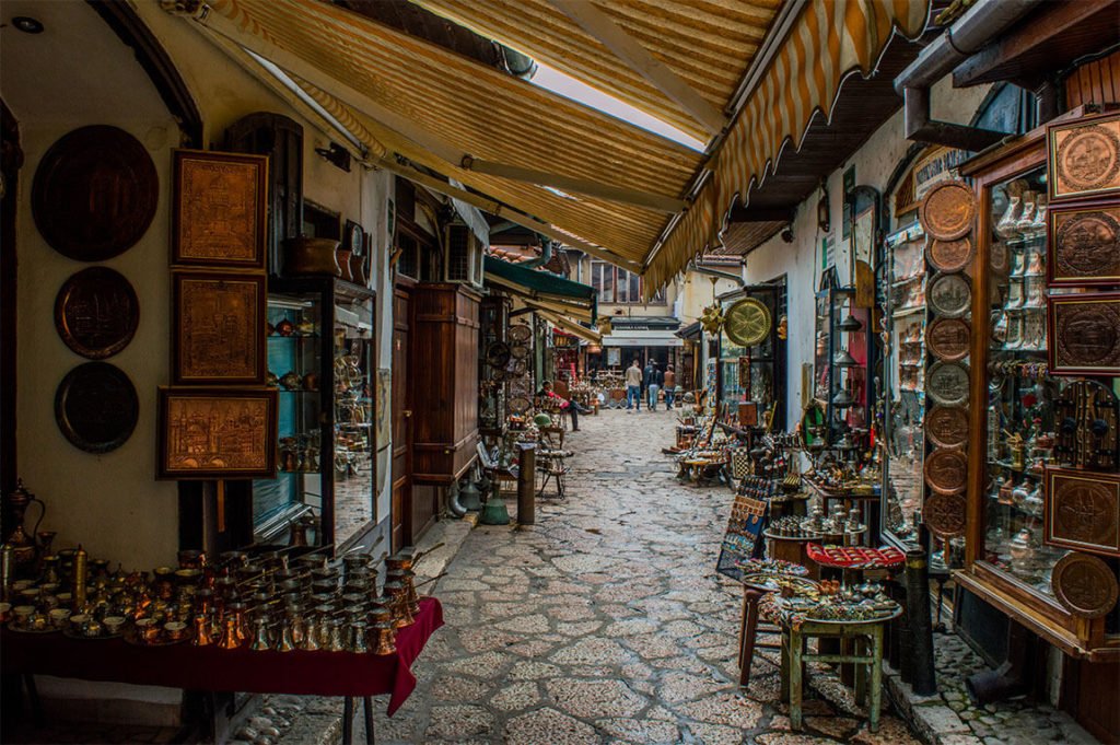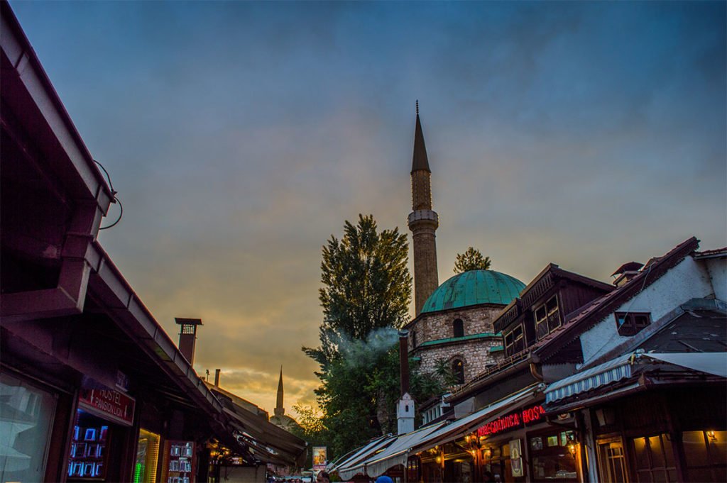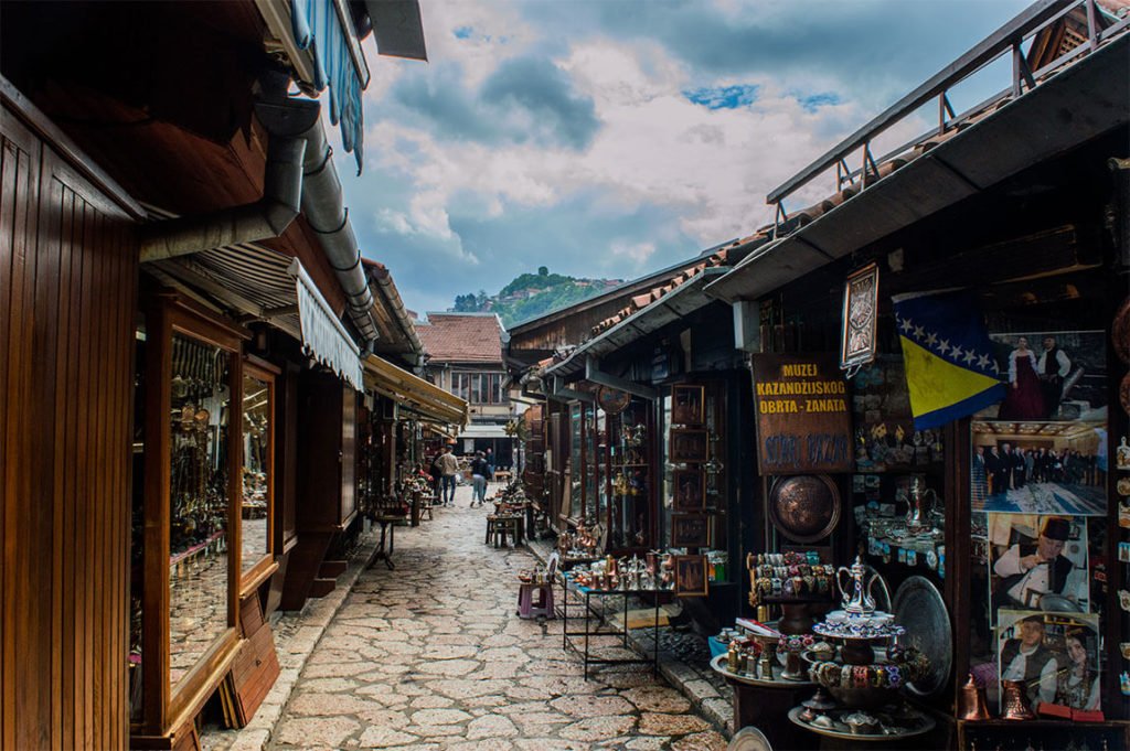 Pour moi, outre ces petites boutiques, cet artisanat qui me rappelle le Bakırcılar Çarşısı de Gaziantep, ce côté petit village vraiment agréable, ce qui fait le charme du centre ottoman de Sarajevo, c’est son dédale de petites ruelles qui semblent sortir d’une autre époque, son mélange des styles, ses cafés installés dans les cours de vieux caravansérails.