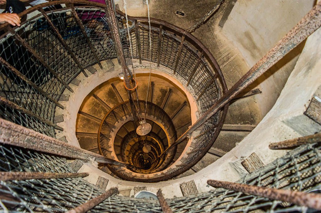 Le clou de la visite, c’est probablement la descente dans les entrailles de la roche jusqu’au grand puits. Pour assurer un accès à l’eau à ses soldats en cas de siège, Vauban imagine un puits gigantesque à travers la roche jusqu’à la nappe phréatique du Doubs. Le puits est profond de 137 mètres (un des plus profonds de France, le plus profond serait celui de la Citadelle de Besançon, profond de 150 mètres). Le guide se saisit d’un bol d’eau et, dans le silence général, verse l’eau dans le puits. On attend le plouf. On attend, on attend. Quel effet étrange cette attente, verser de l’eau dans un puits et ne pas entendre le plouf qui boucle la boucle te met dans un état particulier. Il faudra atteindre 15 secondes avant que l’eau atteigne le fond du puits. Franchement, j’ai trouvé ça fascinant.