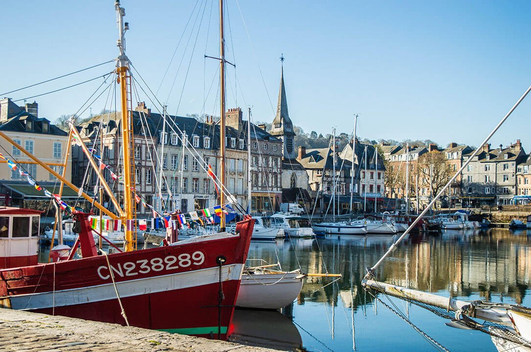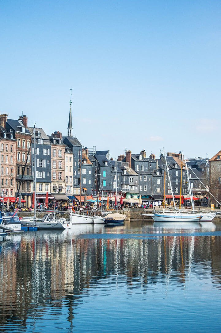 Elle est une des villes les plus emblématiques de Normandie. Les clichés de son petit port ceinturé de vieilles maisons en ardoises ont beau avoir fait le tour du monde, on ressent toujours quelque chose quand on vient ici. Est-ce l’embouchure de la Seine toute proche et l’appel du large ? Est-ce la proximité avec la vibrante ville du Havre, de l’autre côté du fleuve, qui vient contraster avec le charme pittoresque de cette petite ville où le temple semble s’être arrêté ? Ou est-ce justement cette impression que le temps n’a pas d’emprise sur Honfleur, que ses maisons à colombages et ses rues pavées regardent passer les siècles sans prendre une ride ? On ne peut réellement savoir ce qui confère à Honfleur cette aura particulière mais on se laisse volontiers porter par son atmosphère qui invite à la flânerie et à la contemplation.