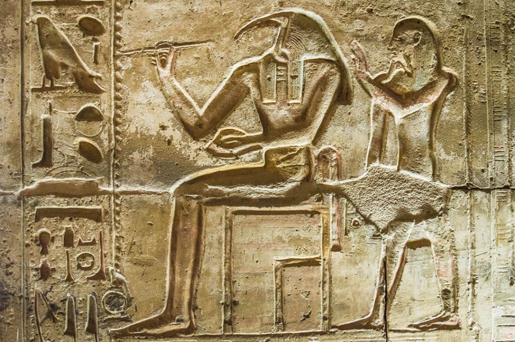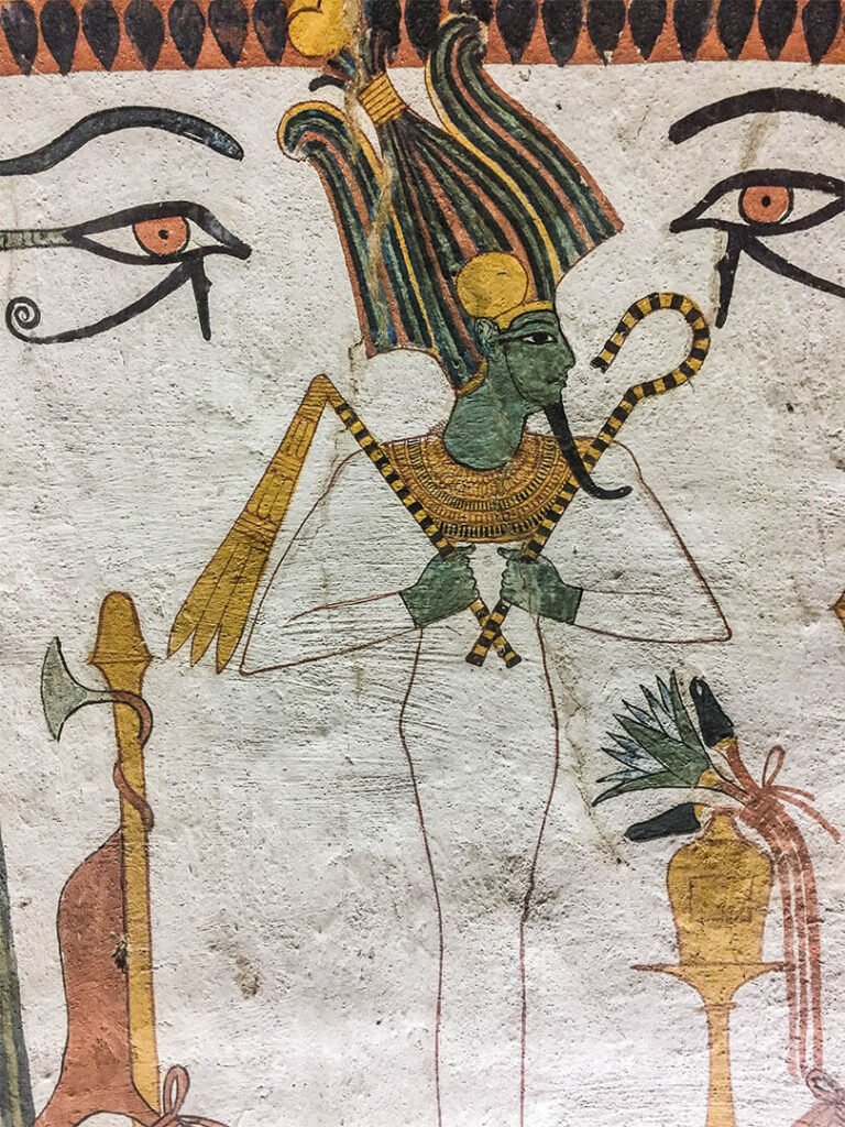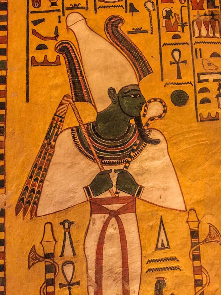 Dans la mythologie égyptienne, Osiris est le frère de la déesse et du dieu Seth. Jaloux de son frère, Seth assassine Osiris, le découpe en morceaux qu’il éparpille dans toute l’Égypte. Sa tête, elle, aurait été retrouvée sur le site d’Abydos qui devient une ville sainte, la cité du dieu Osiris, et fait l’objet d’un important pèlerinage. Ce pèlerinage sera amplifié sous le règne du pharaon Séthi I qui fait construire à Abydos un temple.