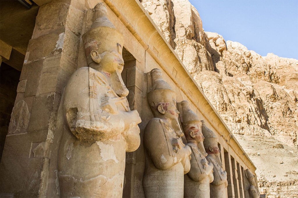 Temple le plus connu de la Rive Est du Nil, le temple de Deir El Bahari surprend par ses formes modernes et épurées, loin des colonnes sculptées et travaillées de Karnak ou de Louxor. C’est le temple de la reine Hatchepsout, la seule et unique femme pharaon de l’histoire égyptienne.