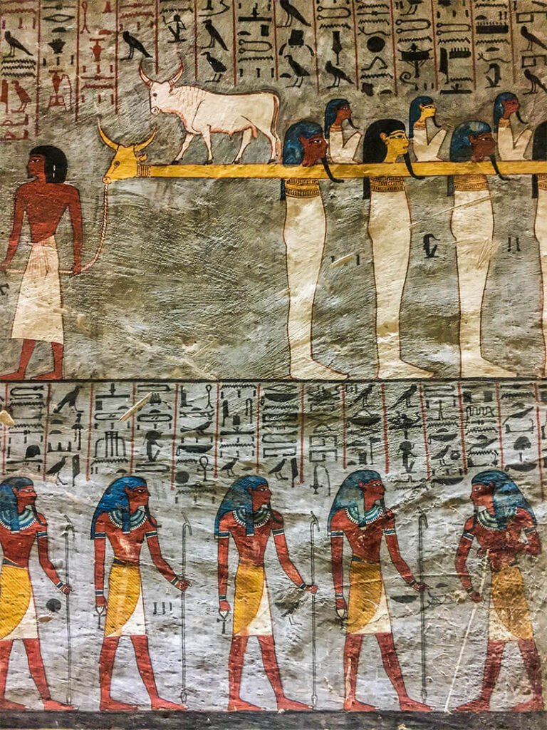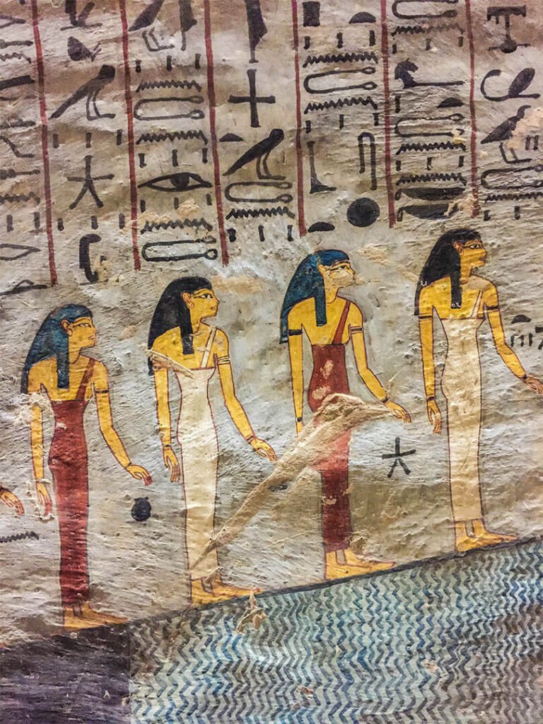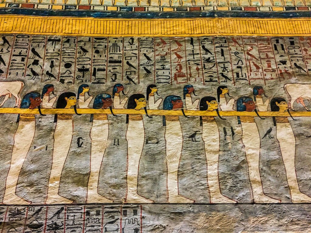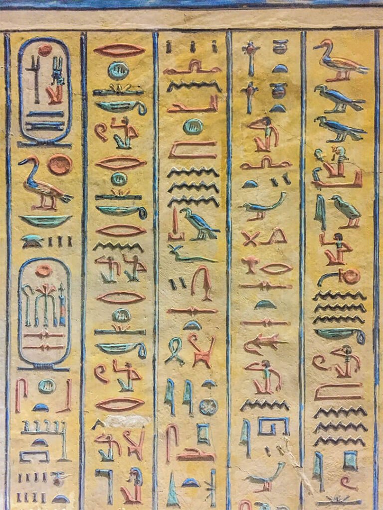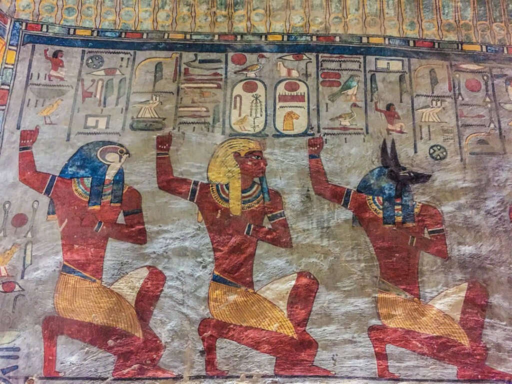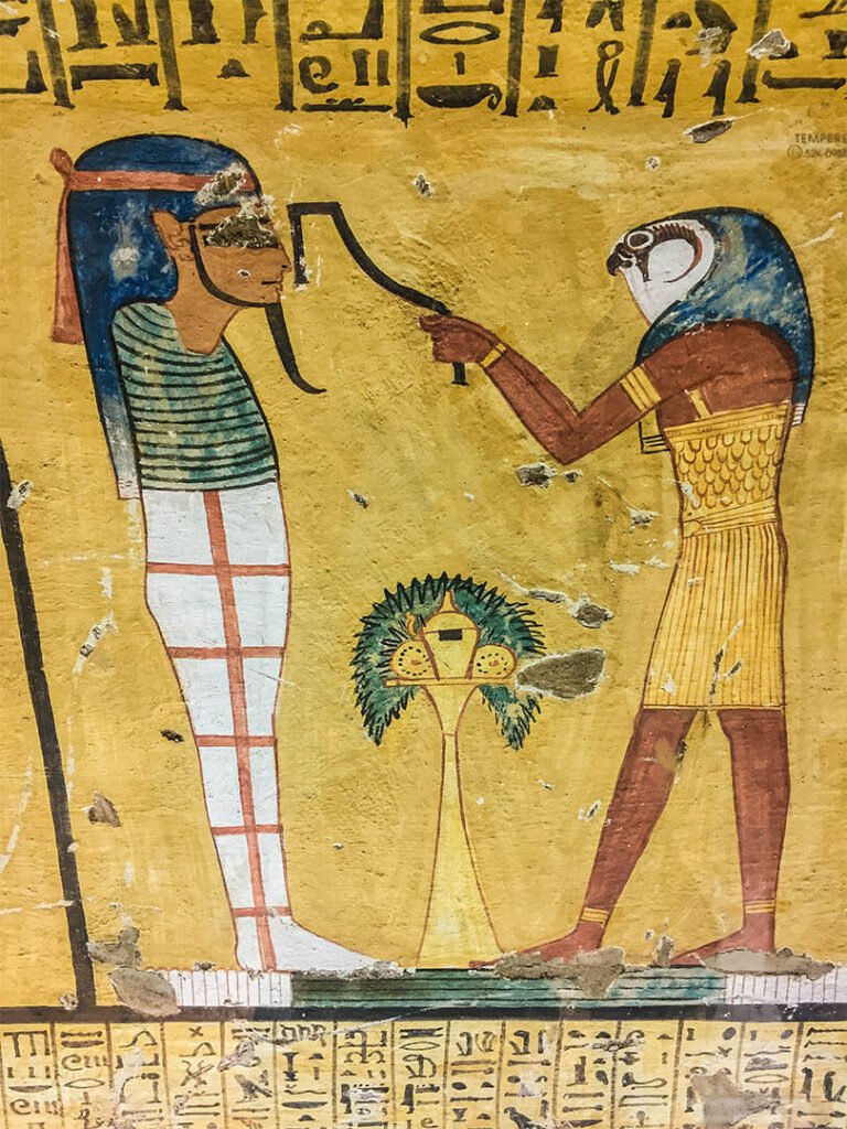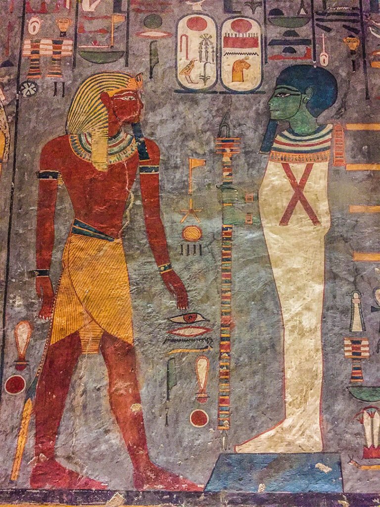 On pourrait visiter par exemple la tombe de Toutankhamon sauf que la totalité du mobilier funéraire (qui a fait sa renommée) se trouve au Musée du Caire et, le pharaon étant mort jeune après seulement 9 ans de règne, les ouvriers n’ont pas eu le temps de décorer sa tombe : les murs sont donc nus, sans aucune fresque, aucune couleur. Mieux vaut prendre le temps de visiter d’autres tombes aux décors remarquables.