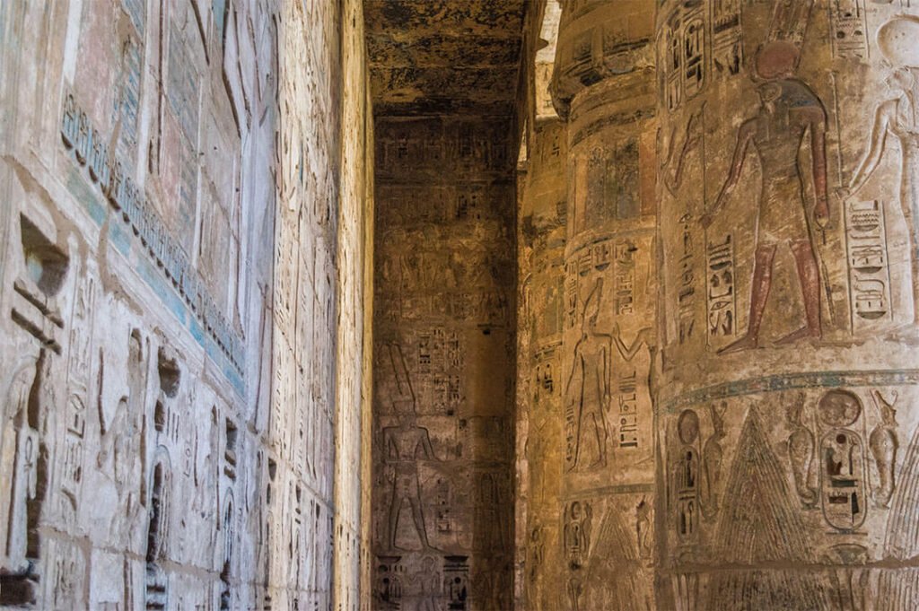 Des temples de Louxor, c’est peut-être mon préféré. J’aime l’élégance et la sérénité de la cour du temple aux colonnes et statues imposantes, j’aime le côté impériale des grandes portes d’accès au temple, les couleurs de la salle hypostyle, la beauté des bas-reliefs sur les murs… Medinet Habou est un temple sublime à ne pas manquer !