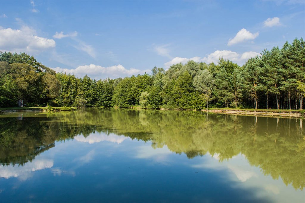 À perte de vue s’étalent champs et forêts, les routes sont bordées d’herbes hautes et de fleurs sauvages, les jardins accueillent des arbres coulant sous les fruits mûrs. Parfois, entre les branchages, on distingue des étangs et si tu me connais bien, tu devrais savoir que j’ai une passion pour les étangs, les lacs et les rivières.