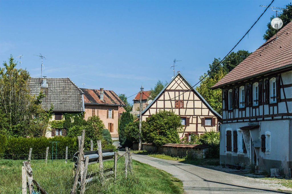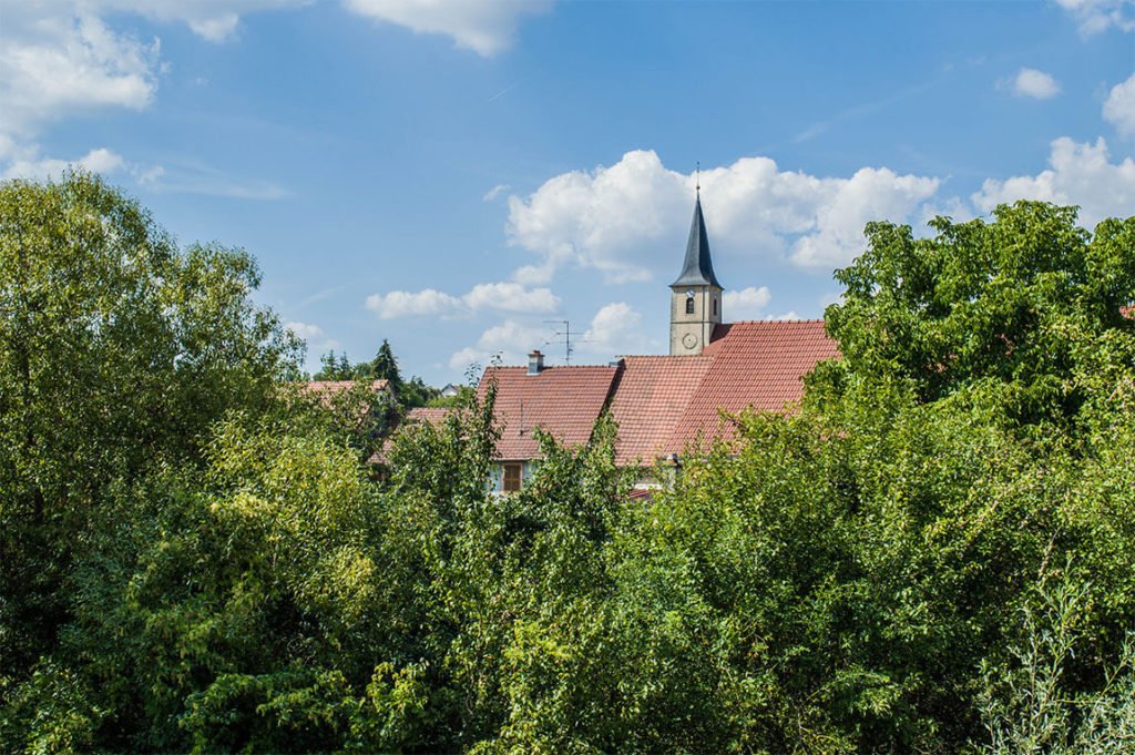 Cette fois ça y est, quittons les zones urbaines pour sillonner les chemins de campagne et traverser des villages craquants. Tu verras, c’est comme si on était déjà en Alsace ! Le Sundgau, c’est un coin vraiment adorable et bucolique, calme et paisible. À peine sorti des villages, les chemins de campagne invitent à une promenade grands yeux ouverts.