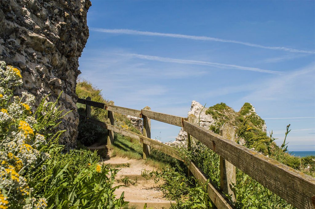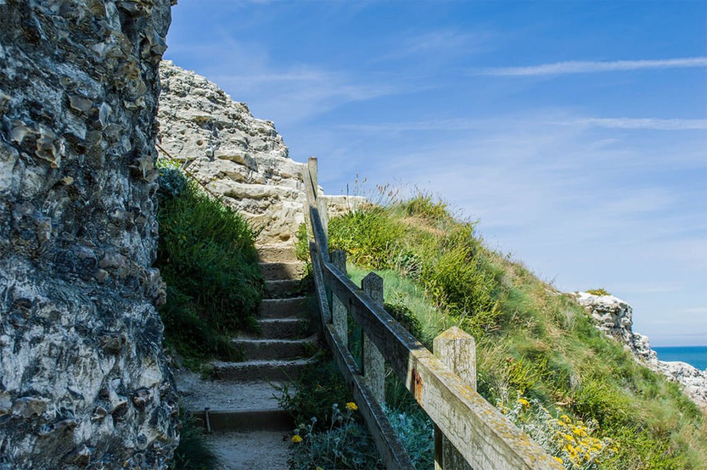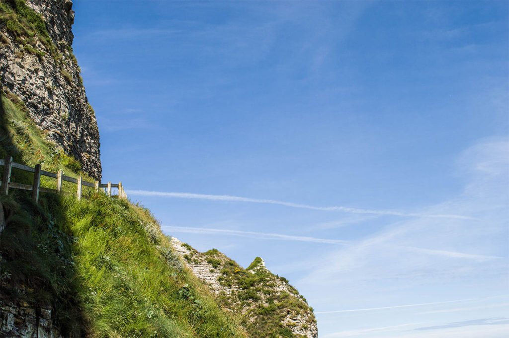 Depuis une des criques, un escalier permet de rejoindre le dessus des falaises. L’occasion de se muscler les cuisses bien que ce ne soit pas si physique que ça. Côté sécurité, le chemin est bien protégé avec sa jolie balustrade en bois.
