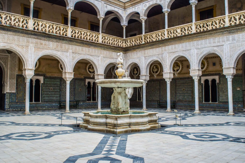 Là encore, c’est un mélange de styles et d’influences qui se marient à la perfection : le style mudéjar avec son architecture arabo-musulmane, le style de la Renaissance italienne avec ses colonnes et ses statues et une influence portugaise avec de superbes azulejos.