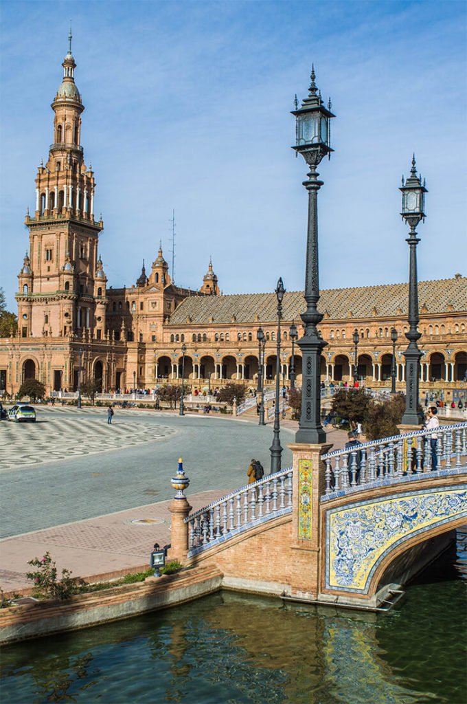 C’est une des places les plus spectaculaires de la ville. Construite entre 1914 et 1928 pour l’Exposition Ibéro-Américaine de 1929, elle est imposante par sa taille et par l’harmonie de son architecture.